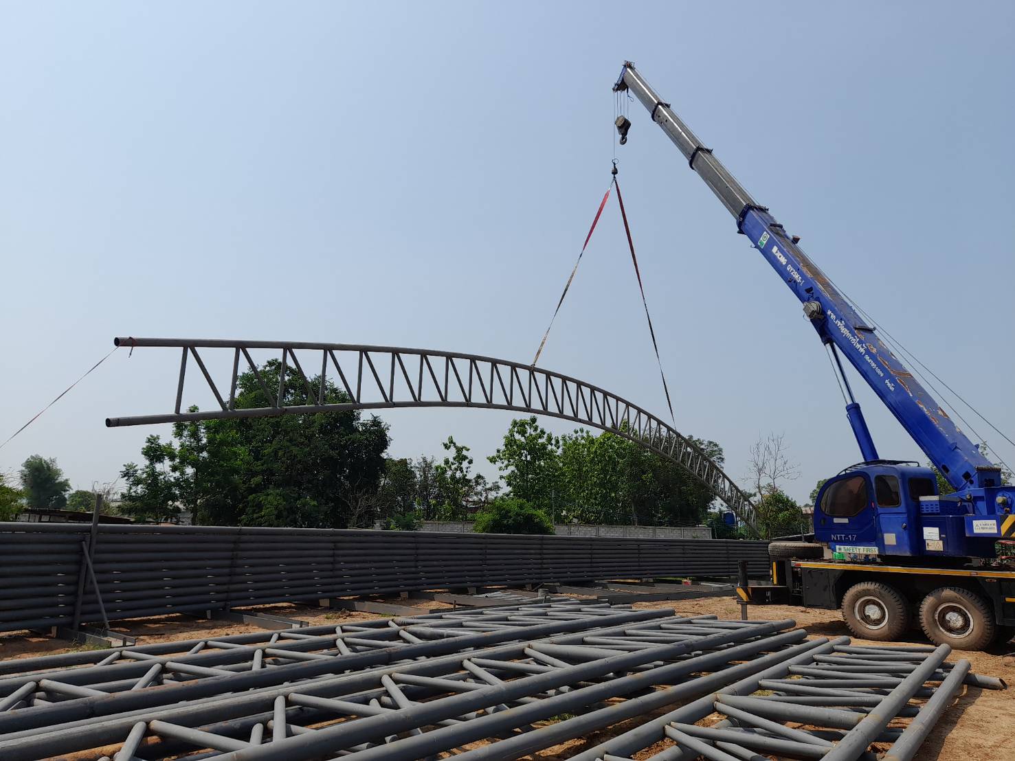 โครงหลังคาเหล็กของเราที่ อ.หนองบัวแดง จ.ชัยภูมิ ของเราคืบหน้าไปมากแล้วครับ วันนี้มีการเอารถเครนเข้ามาเพื่อพลิกทัชเชื่อมแน่นอีกด้านนึง ถ้างานฐานรากเสร็จก็พร้อมประกอบโครงหลังคาเหล็กได้เลยครับ